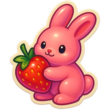 pink bunny holding strawberry emoji