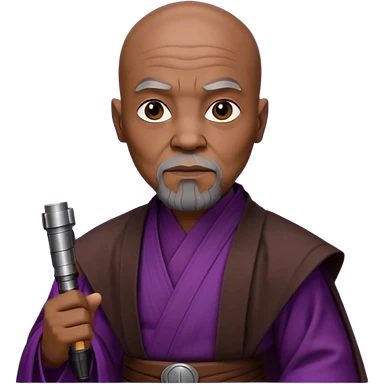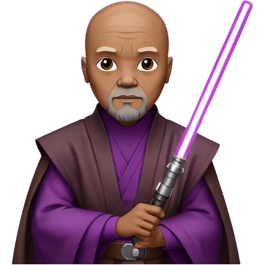 star wars master windu bald head, no facial hair, brown jedi outfit with purple lightsaber emoji
