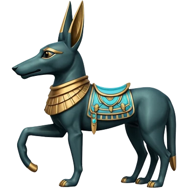 Ancient style saddled four-legged statue casually adorned anubis canine casually posed emoji