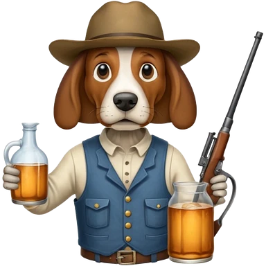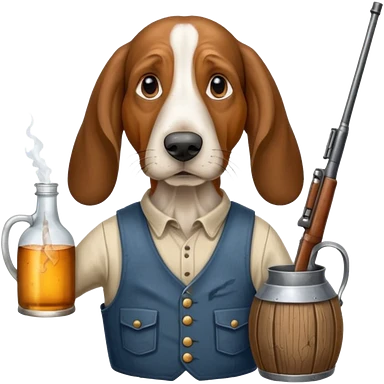 hillbilly basset hound head body of man with moonshine and gun emoji emoji