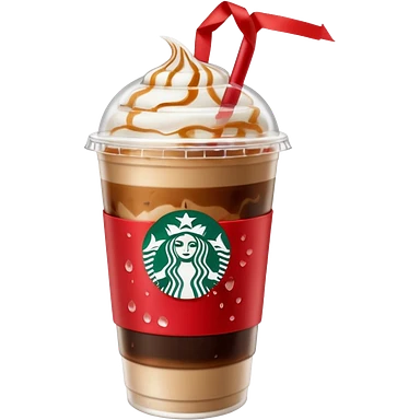 Starbucks iced espresso with milk and the cup has red ribbons printed on it emoji