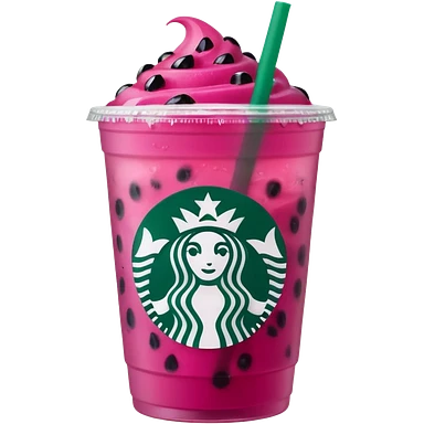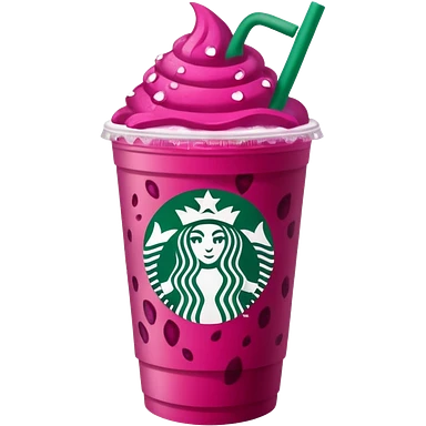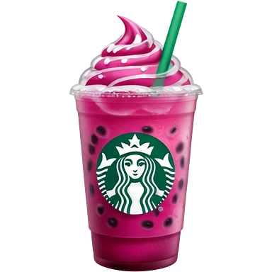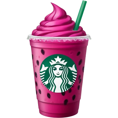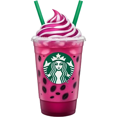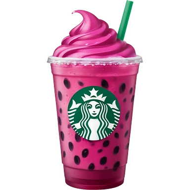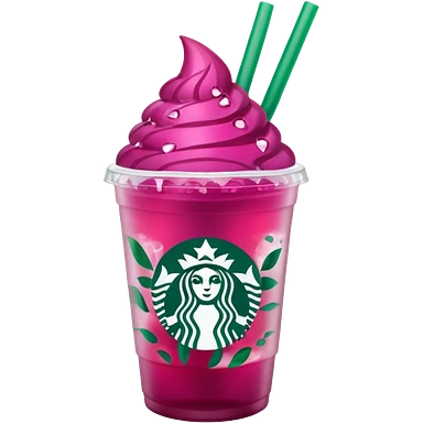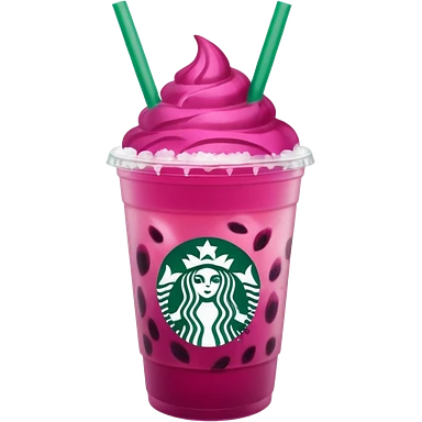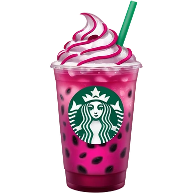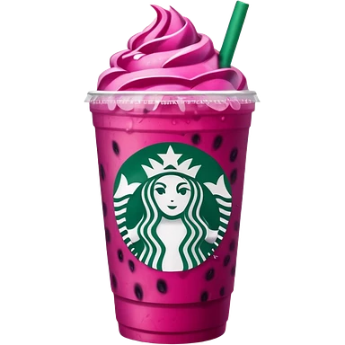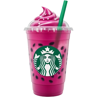 Starbucks dark pink dragonfruit refresher. no pink cream on top. starbucks logo. emoji