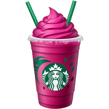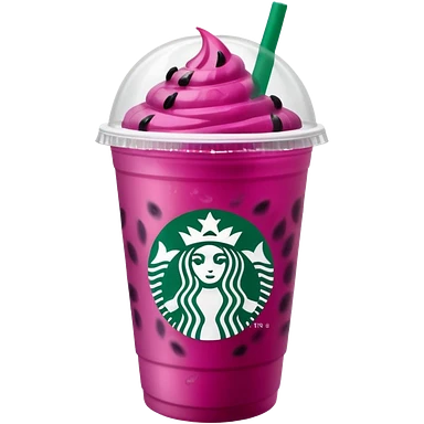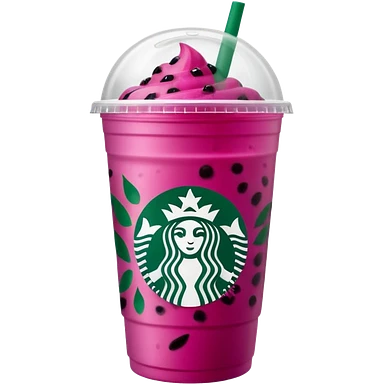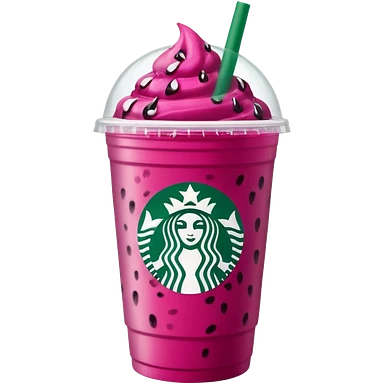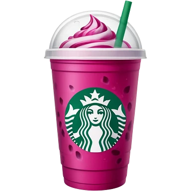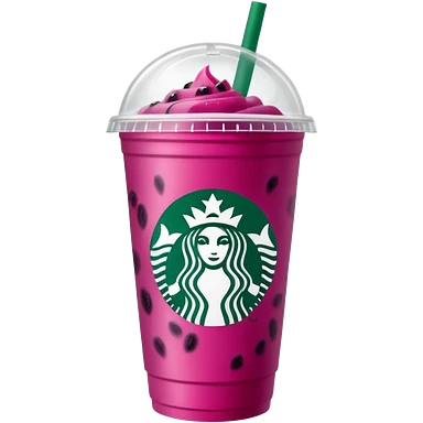 Starbucks dark pink dragonfruit refresher. flat on top. starbucks logo. emoji