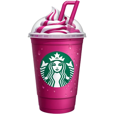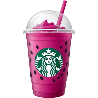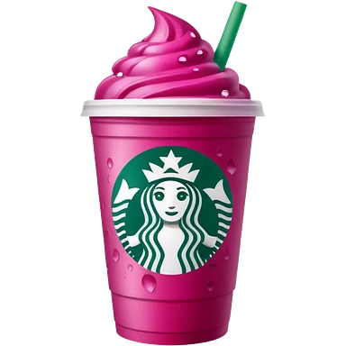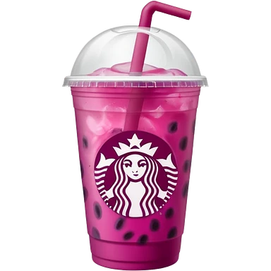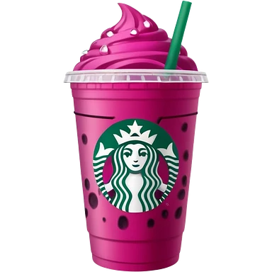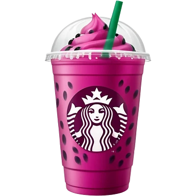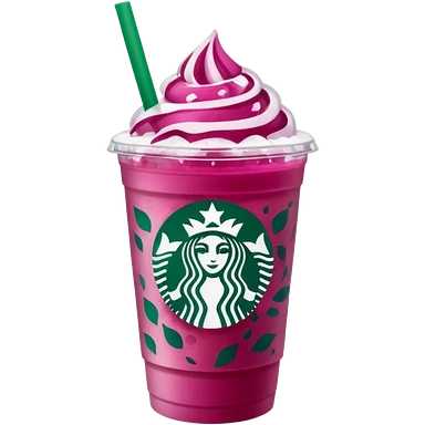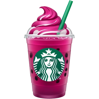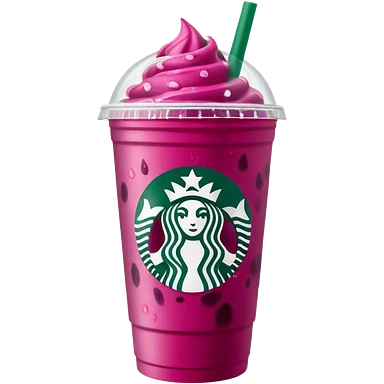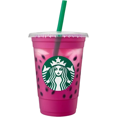 Starbucks dark pink dragonfruit refresher. no swirl on top. starbucks logo. emoji