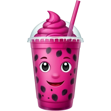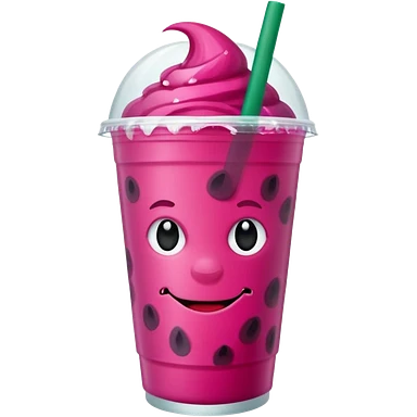 Starbucks dark pink dragonfruit refresher. white opaque lid. starbucks logo. emoji