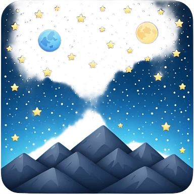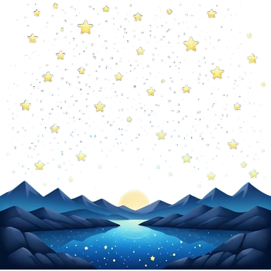 “Expansive starry night sky with bright constellations and a glowing full moon, a couple of shooting stars, and a peaceful lake reflecting the sky. Surrounding the lake are silhouettes of trees.” emoji