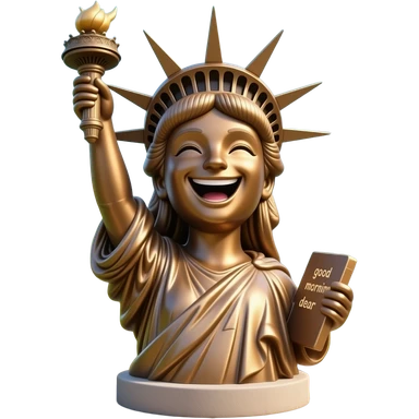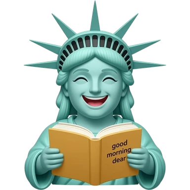 statue of liberty laughing and has a writing on the book "good morning dear" emoji | AI Emoji Generator