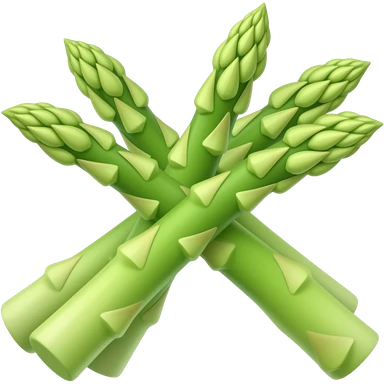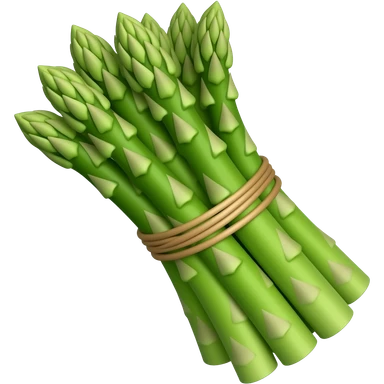 a bundle of asparagus spears, green, tight tips, firm stalks fading to pale, smooth with vertical ridges, natural color variation, stems aligned, unpeeled, slightly curved, no extras, soft lighting, emoji scale emoji