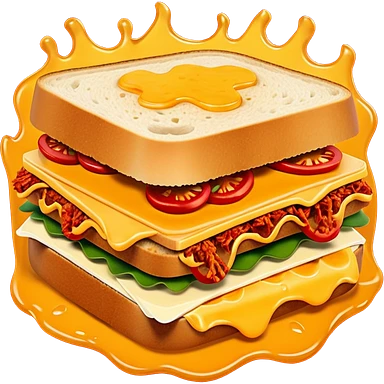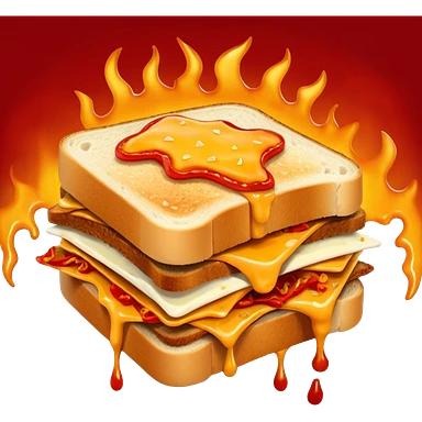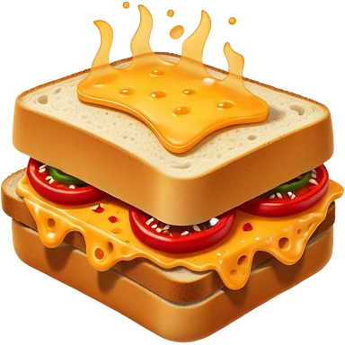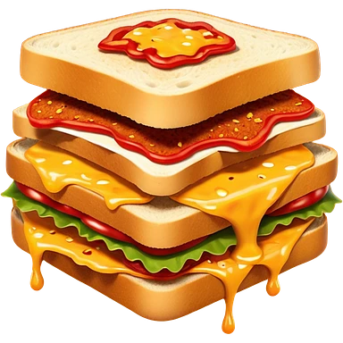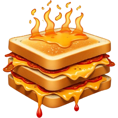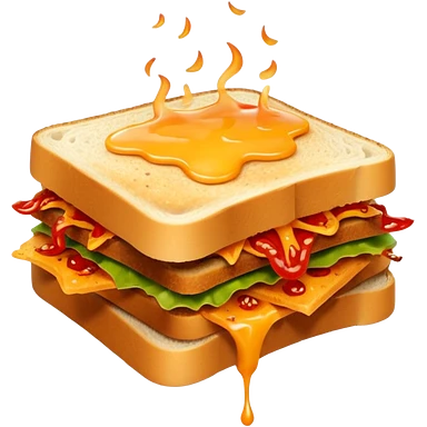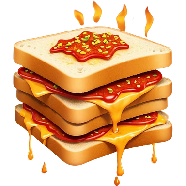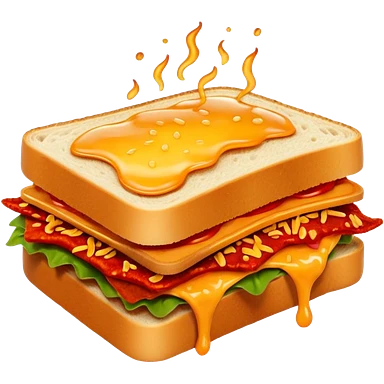 extra spicy sucuk sandwich object icon, crispy toasted bread, lots of spicy sucuk slices, dripping melted cheese, hot chili sauce, red pepper flakes, spicy steam effect, 3D cartoon, mobile game icon style, clean background, no text, no watermark emoji