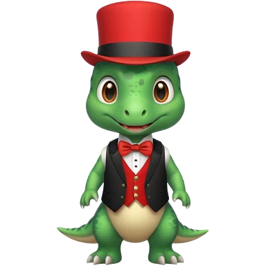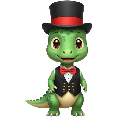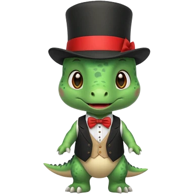 Steampunk:a very cute and adorable green anthropomorphic baby dinosaur with a red top hat emoji