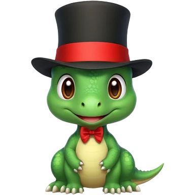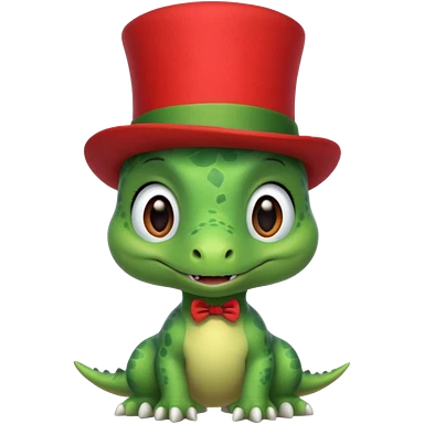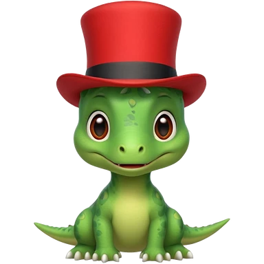 A very cute and adorable green anthropomorphic baby dinosaur with a red top hat emoji