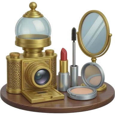 steampunk a wooden eccentric camera obscura on a miniature wooden stand emoji