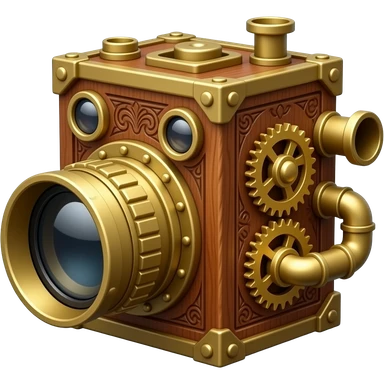 steampunk wooden eccentric camera obscura on a wooden tripod emoji