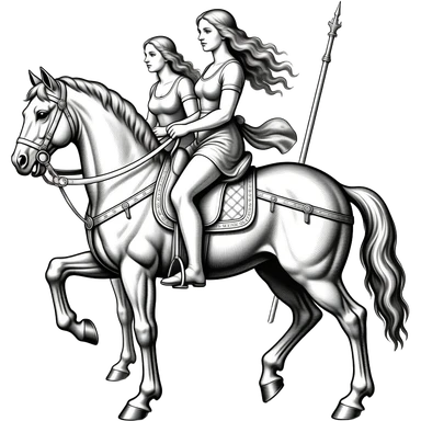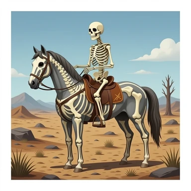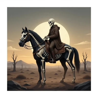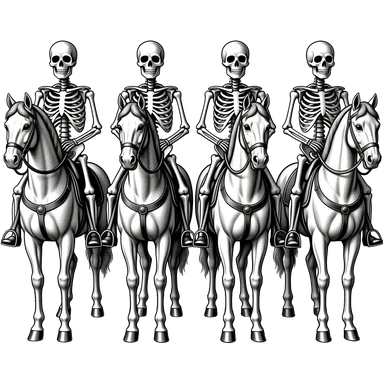 ivory Four thin women as riders of the Apocalypse, after a graphic by Albrecht Dürer in a desolate landscape on horse skeletons emoji