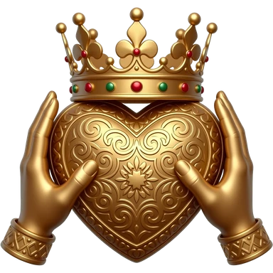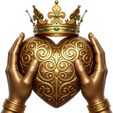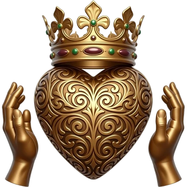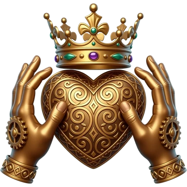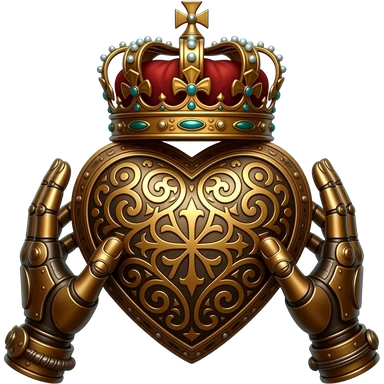 steampunk style - two bronze hands touch a bronze heart richly ornamented with arabesques with a richly decorated royal crown, dramatic lighting - backlight emoji