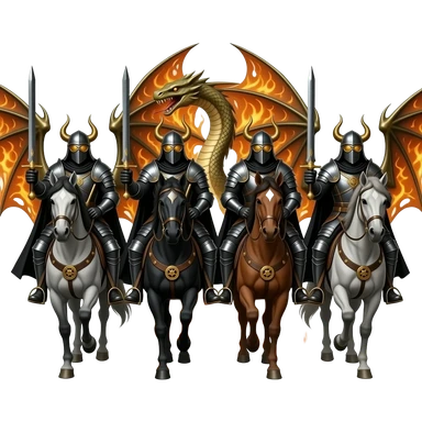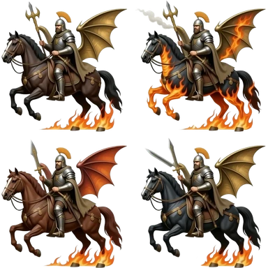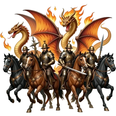 steampunk style - The four horsemen of the apocalypse ride winged fiery serpents. emoji