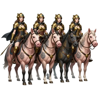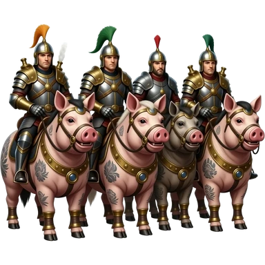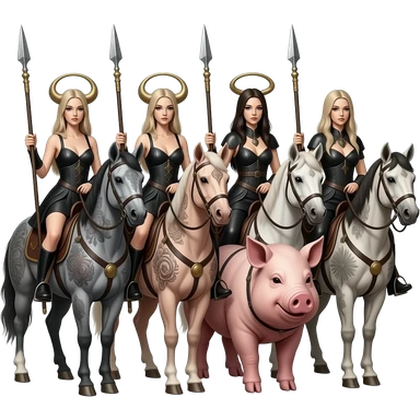 steampunk - four thin and pale female horsemen of the apocalypse ride large tattooed pigs in a messy composition emoji