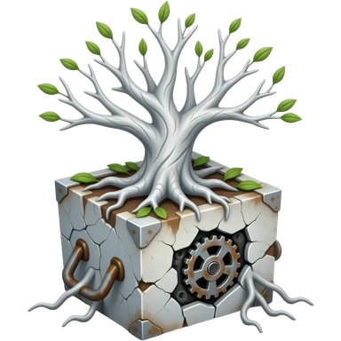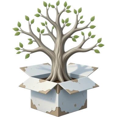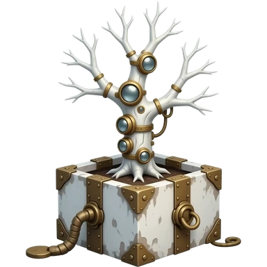 steampunk - white bare old tree grows from a dilapidated white box emoji