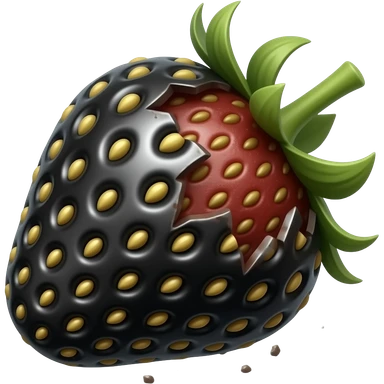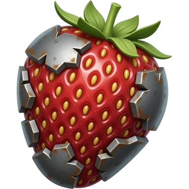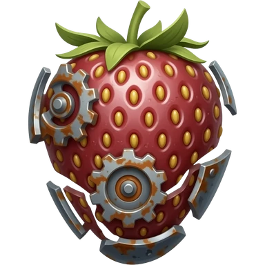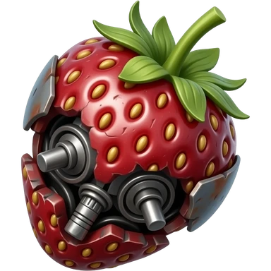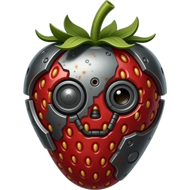 cinematic - rusty broken mechanical steel black strawberry emoji