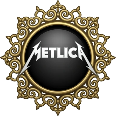 a surreal symbol for the group Metallica with a lot of arabesques and tendrils around the brooch on which the logo rests emoji