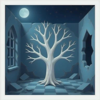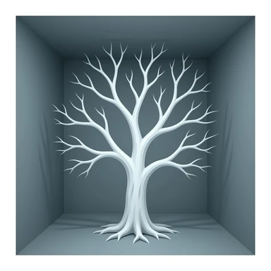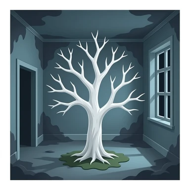 surrealistic - white bare haunted tree grows in a room emoji