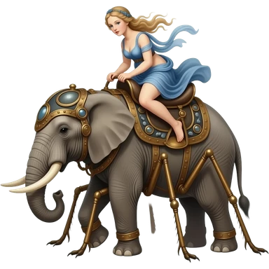 steampunk style - the long-legged elephant of insects from Surrealistic Salvador Dali's paintings carries Botticelli's ethereal Venus on its back emoji