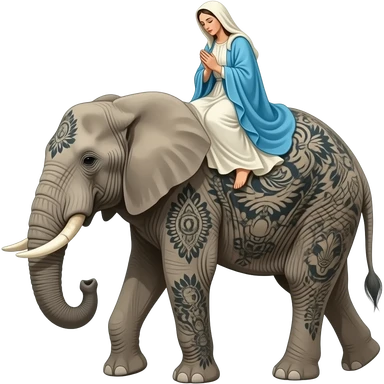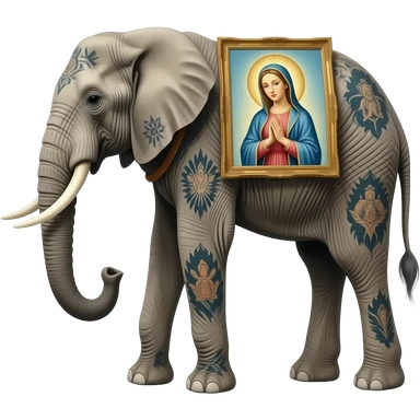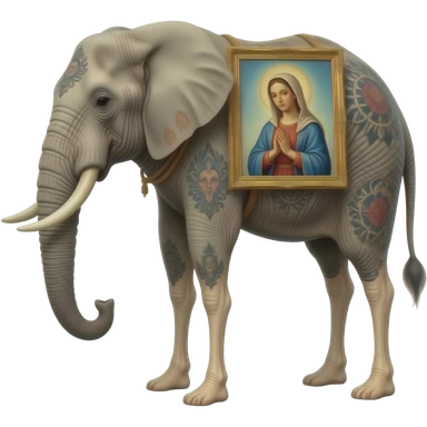 cinematic surrealistic - a tattooed elephant with very thin long legs from Salvador Dali's paintings carries an ethereal Madonna on its back emoji