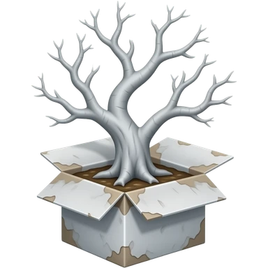 3d - white bare haunted tree grows from a dilapidated box emoji