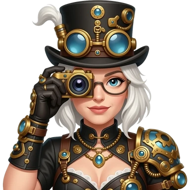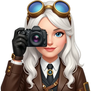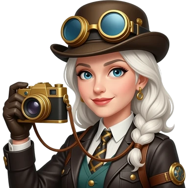 steampunk white haired lady with a camera emoji