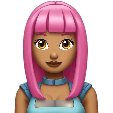 a girl wearing a pink fluffy wig with tanned skin dancing to starships emoji