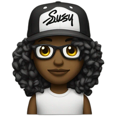 girl with light brown skin, short and black hair, black eyes in windbreaker “stussy” emoji