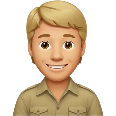 Cinematic Realistic Steve Irwin Portrait Emoji, depicted as a passionate wildlife expert in his signature khaki attire with an enthusiastic smile and a backdrop of the Australian outback, rendered with vibrant textures and dynamic natural lighting that captures his adventurous spirit. emoji