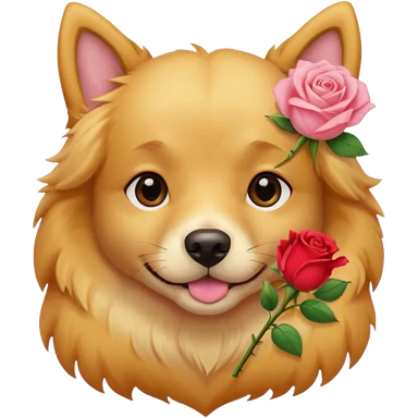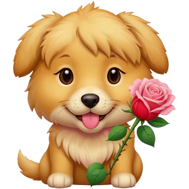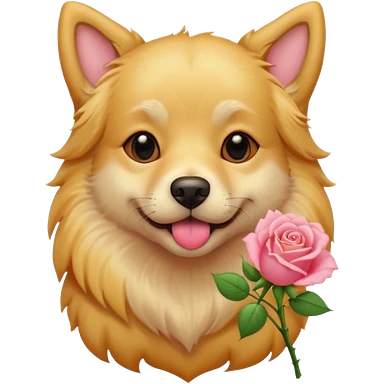 A doggie with a rose in his mouth in soft pink, beige and yellow pastel colors emoji