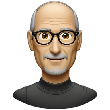 Steve Jobs wearing a black turtleneck using a MacBook. facing forward emoji