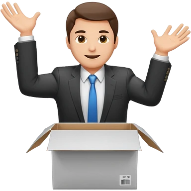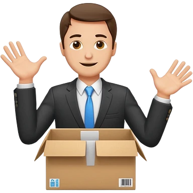 Sticker of a man in a business suit, front view, arms extended forward as if ready to hold a box, friendly expression, clean cartoon style, bold outlines, minimal background, emoji sticker style emoji
