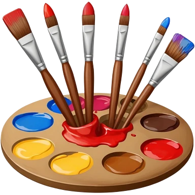 STICKER PINCEAUX ROUGE ET BRUN AVEC PALETTE DE PEINTURE ET TACHE DE PEINTURE emoji