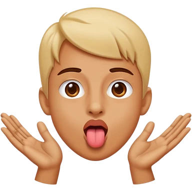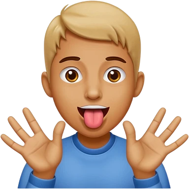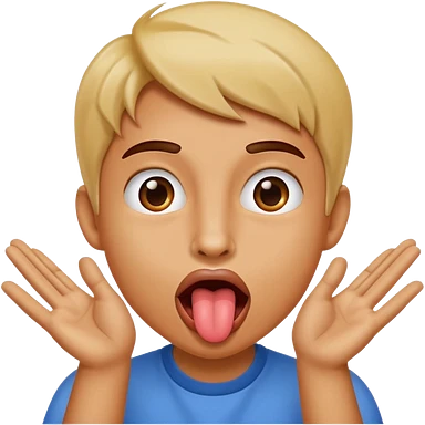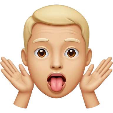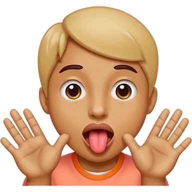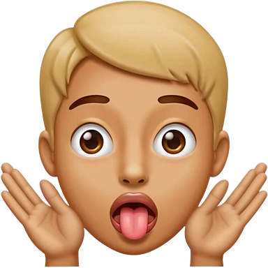 Sticking tongue out with hands gliding through emoji