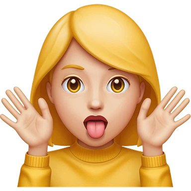 Sticking tongue out with hands gliding through yellow emoji emoji