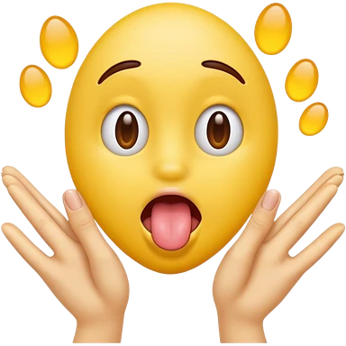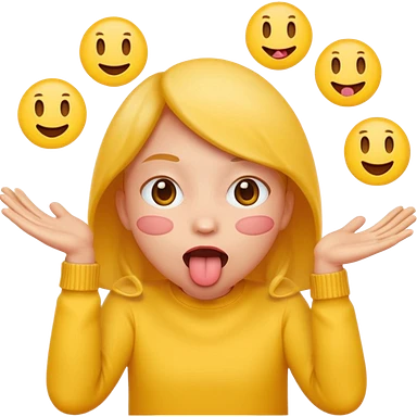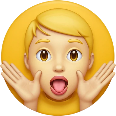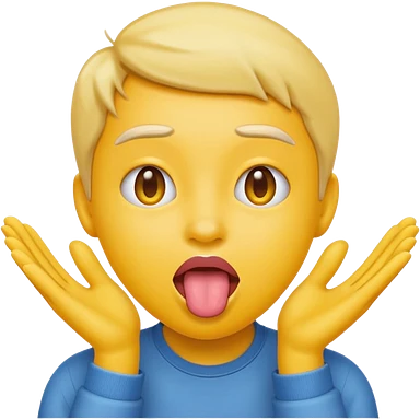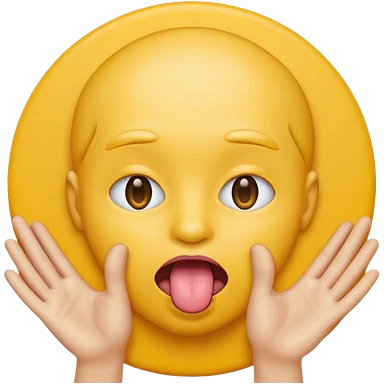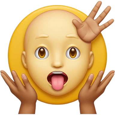 Sticking tongue out with hands gliding through yellow emoji circle face emoji