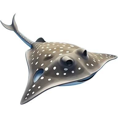 Spotted eagle sting ray with wide wingspan and long spike sting tail at posterior end viewed from above emoji