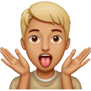 Sticking tongue out with hands gliding through emoji