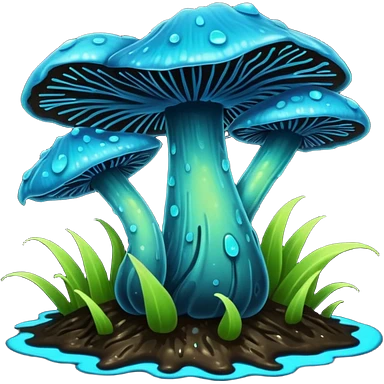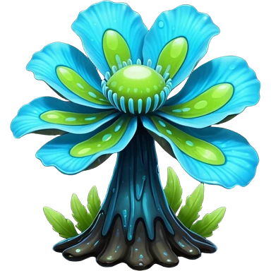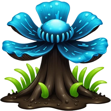 Black and cyan and blue and neon green bioluminescent shiny glowing ET gooey shroomy plenty icky sticky muddy swampy spore flower emoji