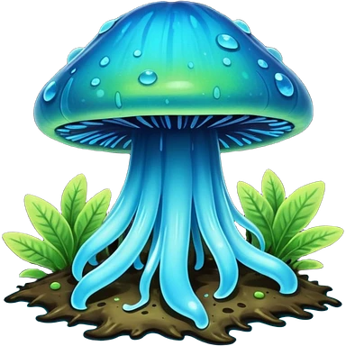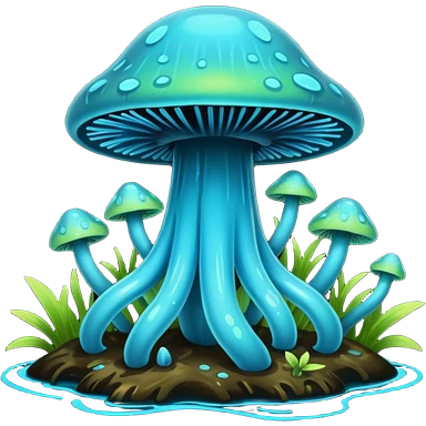 Colorful iridescent cyan and blue and neon green bioluminescent shiny glowing ET gooey shroomy plenty icky sticky muddy swampy spore flower ecosystem environment emoji