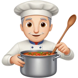A gentle old man in a festive sweater and a white apron, stirring a pot of rich hot chocolate. emoji