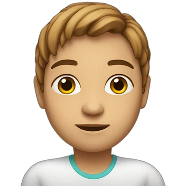 niña pelo corto marron ojos marones camiseta lila falda azul emoji