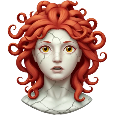 white cracked marble statue head medusa red hair marble no eyeballs emoji