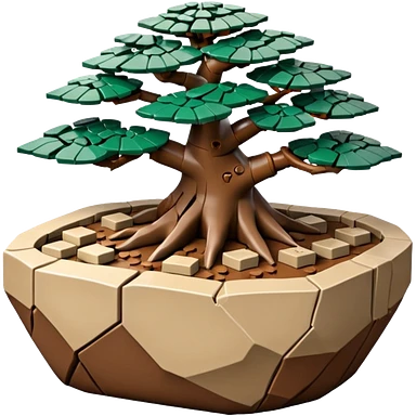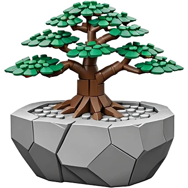 Stone Age rocks cracked and broken forming a very shallow bonsai pot Lego emoji
