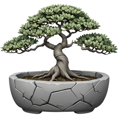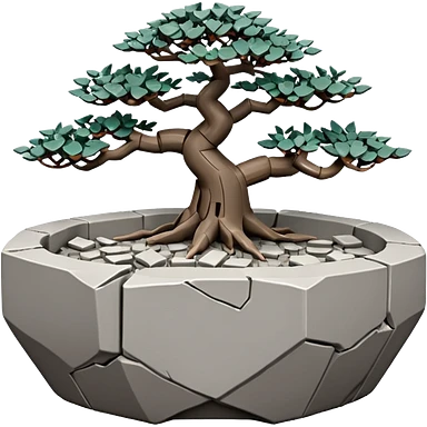 Stone Age rocks cracked and broken forming a very shallow bonsai pot emoji | AI Emoji Generator