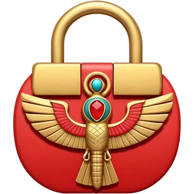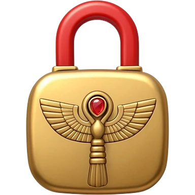ancient Egyptian lock object icon, golden metal lock, ankh symbol, scarab engraving, red gemstone detail, 3D cartoon, mobile game icon style, centered, clean background, soft shadow, no text, no watermark emoji