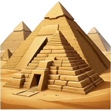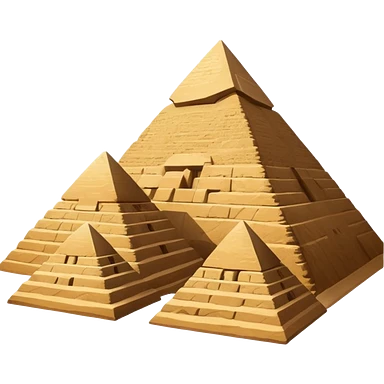 An emoji of the ancient Egyptian Great Pyramid of Giza. It is a large, triangular structure made of stone blocks against a desert background. emoji